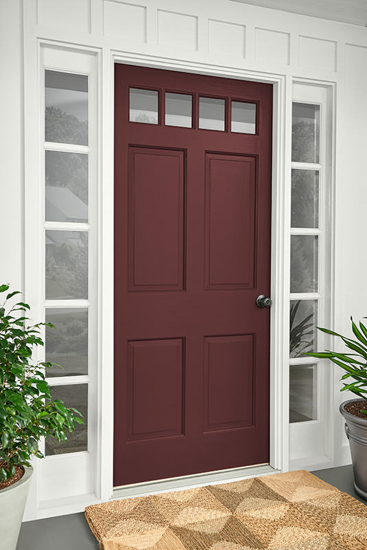 · Front Door: A welcoming front door is key. Benjamin Moore’s Cinnamon Slate adds a touch of earthy warmth that complements red brick perfectly. For a more classic look, a deep navy like Sherwin-Williams’ Naval remains a timeless choice.